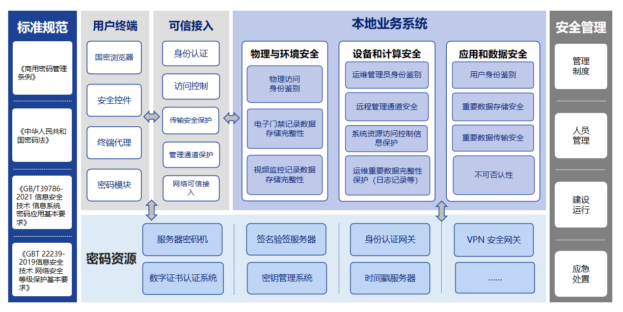 按照《中華人民共和國(guó)網(wǎng)絡(luò)安全法》《中華人民共和國(guó)密碼法》《商用密碼管理?xiàng)l例》等法律法規(guī)以及《江西省政務(wù)信息化項(xiàng)目建設(shè)管理辦法》 等黨政機(jī)關(guān)安全管理有關(guān)規(guī)定,等保三級(jí)及以上的信息系統(tǒng)、關(guān)鍵信息基礎(chǔ)設(shè)施、政務(wù)信息系統(tǒng)等需建立網(wǎng)絡(luò)安全和密碼安全等管理制度, 同步規(guī)劃、同步建設(shè)、同步運(yùn)行密碼保障系統(tǒng),定期開(kāi)展網(wǎng)絡(luò)安全檢測(cè)、風(fēng)險(xiǎn)評(píng)估與密碼應(yīng)用安全性評(píng)估,保障信息系統(tǒng)安全穩(wěn)定運(yùn)行。